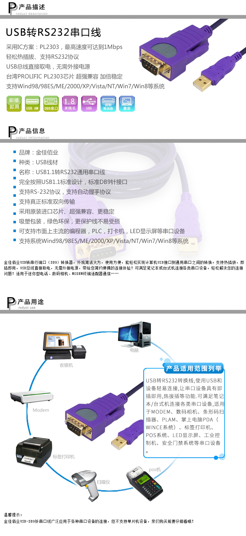 金佳佰業(yè) USB2.0/RS232 串口線 Z104