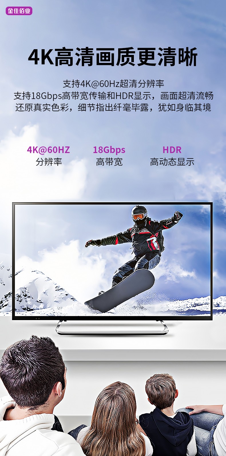 HDMI2.0標(biāo)準(zhǔn):4K/60Hz 3D 18Gbps 分辨率支持: