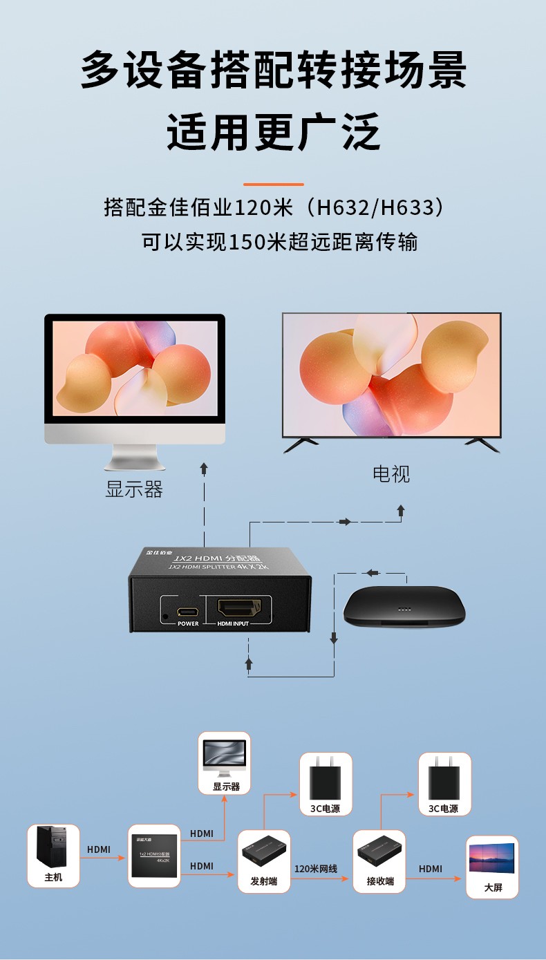 2. 1080P @60Hz 支持前15后20米極限輸出(金佳H113)