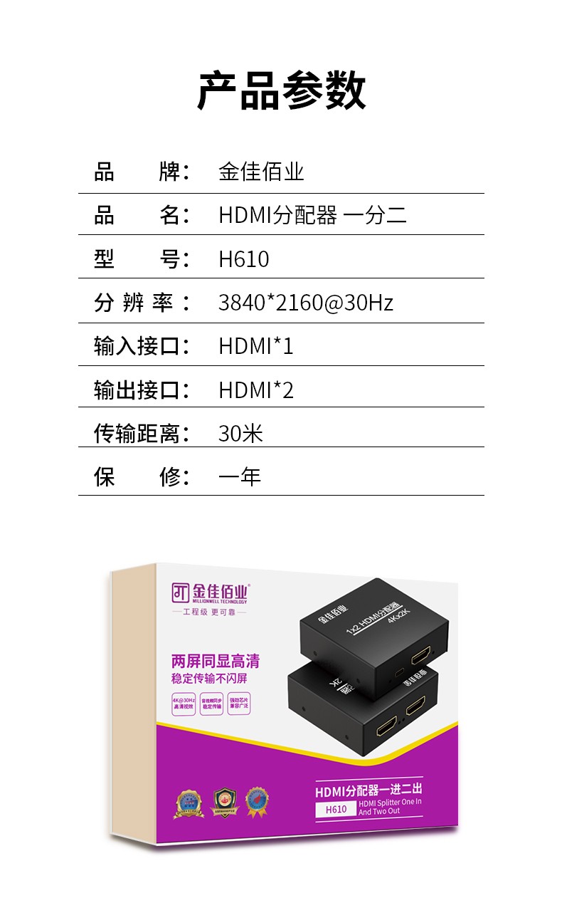 3. 4K@30Hz 支持前10后15米極限輸出(金佳H113)
