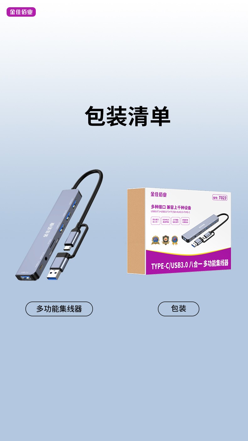 USB3.0*1+USB2.0*3+TF/SD+AUX3.5+Type-C
