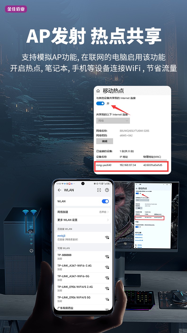 免驅(qū)安裝/AP發(fā)射 熱點(diǎn)共享/多重加密