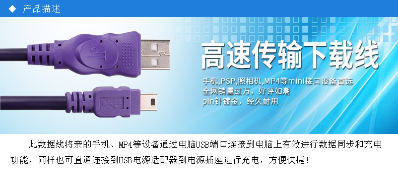 1.AM/5P 下載線2.線芯采用鍍錫無(wú)氧銅,傳輸穩(wěn)定3.數(shù)據(jù)線對(duì)絞,增加信號(hào)傳輸穩(wěn)定4.外被采用超軟環(huán)保紫色膠料 5.線規(guī)24/28AWG OD5.0