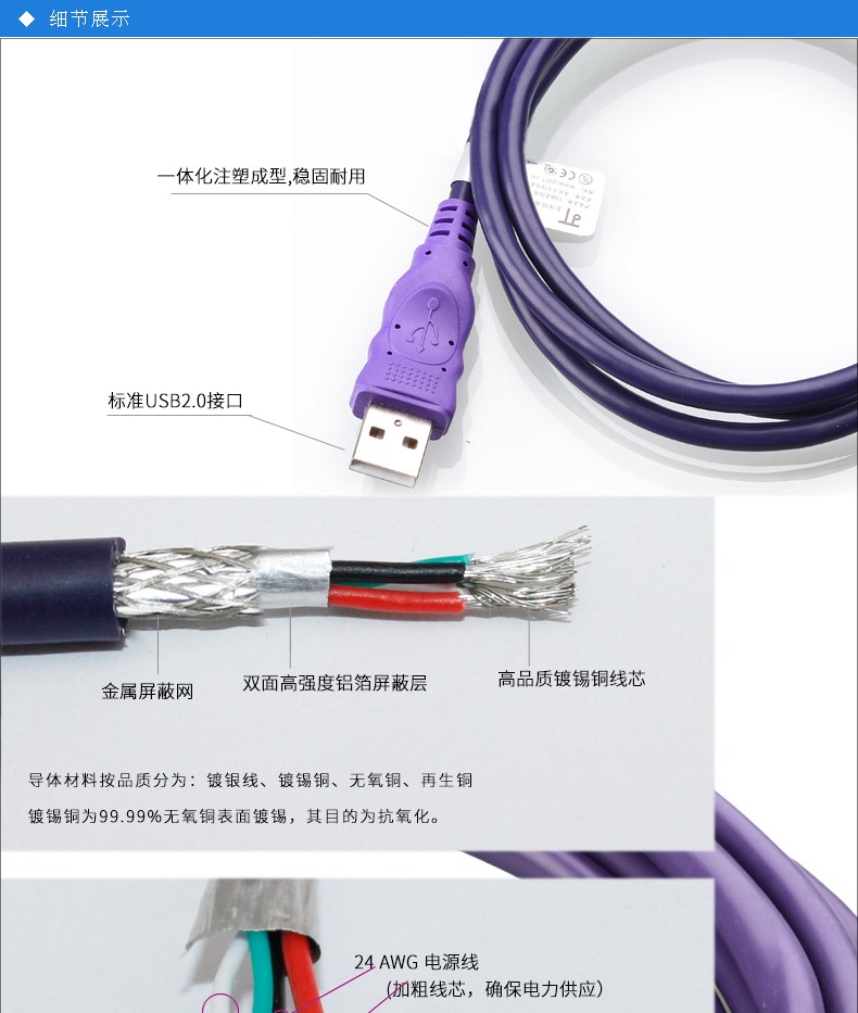 鍍錫無(wú)氧銅線芯,數(shù)據(jù)線對(duì)絞,信號(hào)傳輸更穩(wěn)定