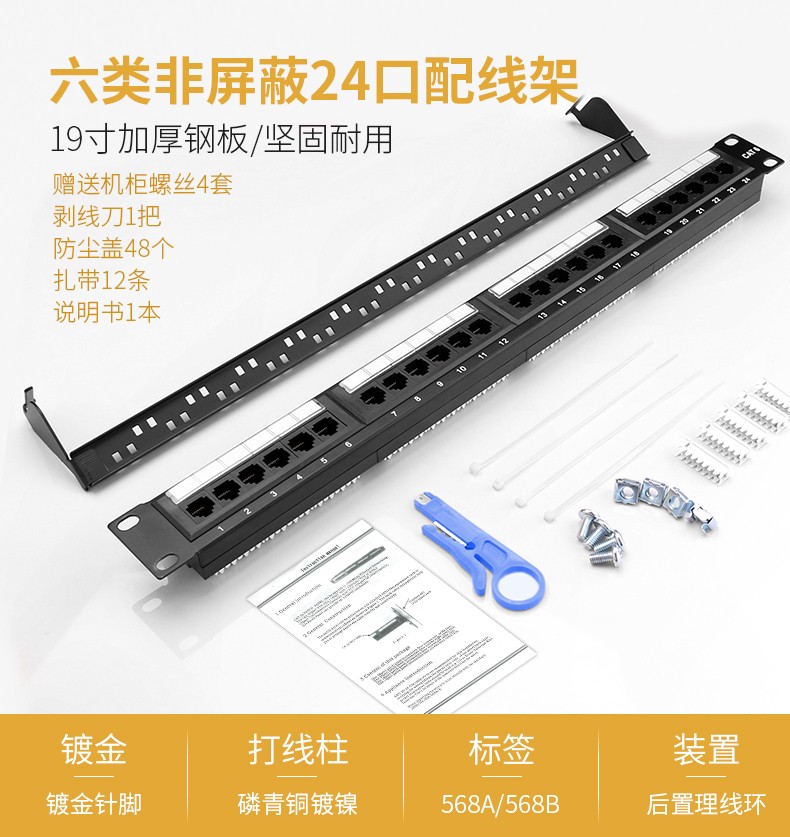 7.配件齊全(說明書/防塵蓋/扎帶/機柜螺釘包/打線刀)