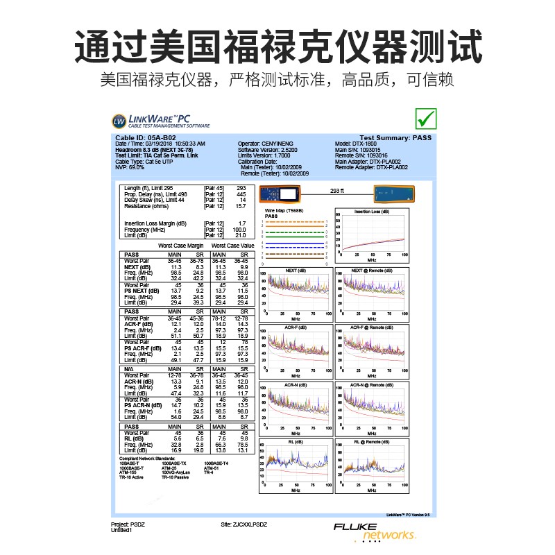 符合百兆以太網應用系統(tǒng),過福祿克測試