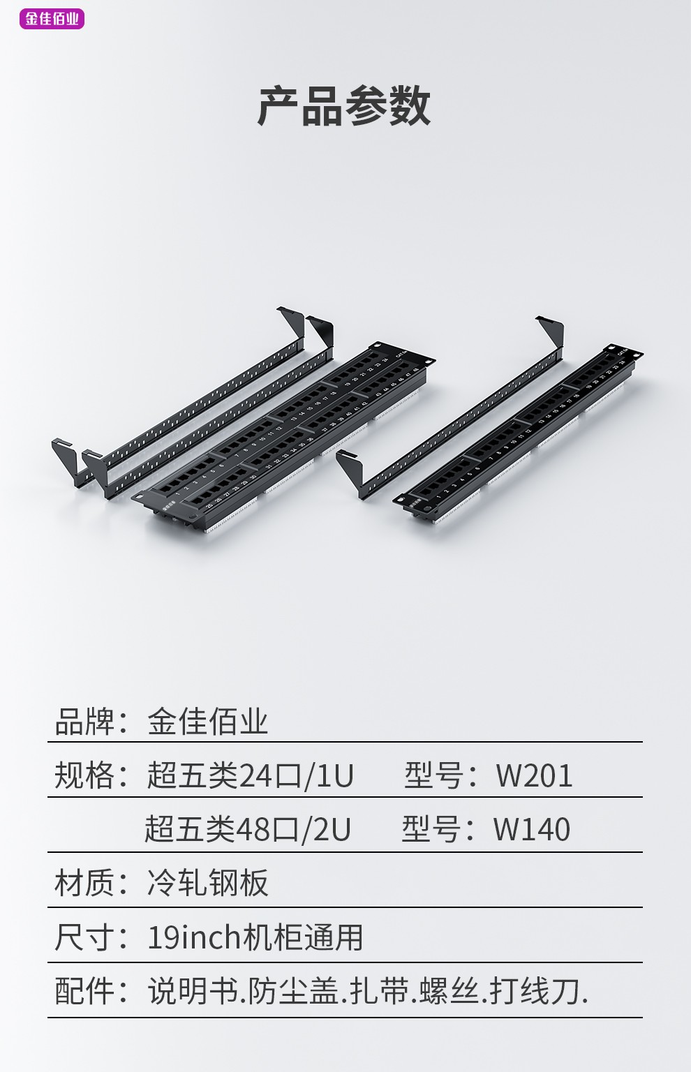 配件齊全(說(shuō)明書/防塵蓋/扎帶/機(jī)柜螺釘包/打線刀)