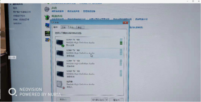 3、在音頻管理見面點擊“播放”,選擇帶有HDMI標識的設備為默認設備。這樣就能正常把電腦聲音通過HDMI輸出到音響;