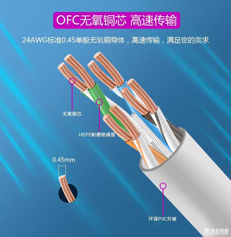 ?1. 8根0.45mm無氧銅導體,信號傳輸快 、使用壽命長
