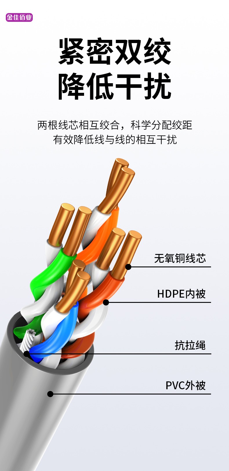 3. 4對無氧銅緊密雙絞 有效降低信號干擾
