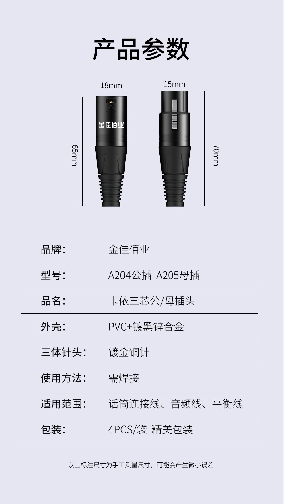 1. 專業(yè)級三芯卡儂頭公母插