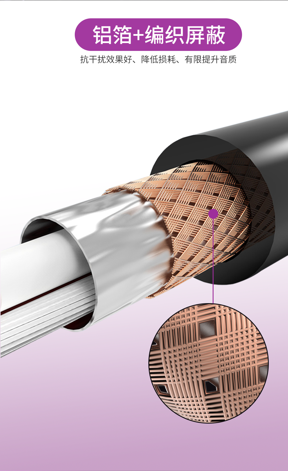 5. 多股銅芯,低阻抗衰減小,傳輸不失真